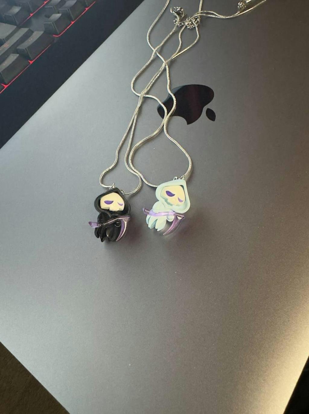 The Midnight Reaper is designed for girls who love their cute with a subtle edge. Featuring a tiny reaper character with pastel purple details and a translucent scythe, it’s playful, expressive, and surprisingly easy to style.